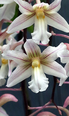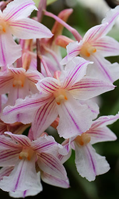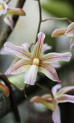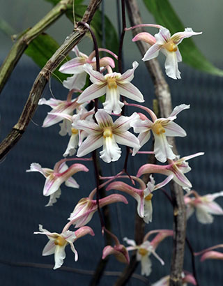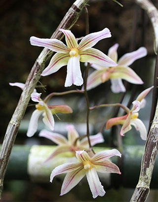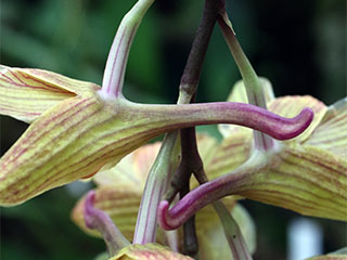 現在(8日)開花中のデンドロビウム3種:Dendrobium crabro, calicopis及びdianae bicolorを撮影しました。