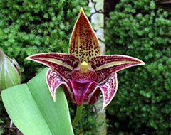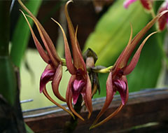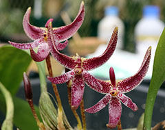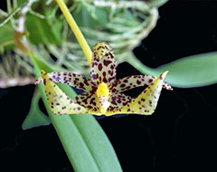 今年の異常な猛暑は多くのランにダメージを与えたのではと思いますが、ようやく秋らしい気温になりはじめました。葉先枯れや落葉が例年に比べ多い株は高温障害の可能性が高く、こうした症状はすでに根が相当傷んでおり植替えが必要と思われます。植替えもその後の順化期間があり、冬期の暖房に問題がなければ10-11月でもできますが、一般的に高温タイプのランに対しては10月中に済ませることが必要です。当サイトでは栽培株数が多くて植替えの適期を選ぶことが出来ず、年中無休の植替えのため温室内での冷暖房にはかなり気を使っています。そうした中、下画像は現在開花中の9種です。各花の詳細は花画像下の青色種名のクリックで見られます。