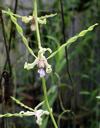 開花が1日限りのランが僅かですが生息しています。こうした種の花を見る度に、昆虫に花粉を運び受粉してもらう虫媒花であり、その株姿からは十分な体力もあるように感じられるにも拘らず、なぜ1日限りの飛来のチャンスしか与え持たないのかが不思議です。下画像のそれぞれはそうした一日花種で、撮影は全て午前中となります。開花は1年に3回程見ることができます。