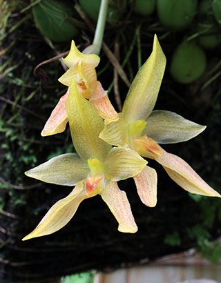 猛暑がようやく収まり平年並みの気温になって来ました。中および高温タイプのランを栽培する温室内では、昼夜の温度差が晴天日には10℃前後(18-30℃)となり、これからの数ヶ月間は開化シーズンを迎えることになります。、一方で、今年の記録的長期に渡る猛暑によって作落ち被害を受けた方も多いのではと思います。下画像は現在開花中の花の一部です。バルボフィラムは花後に40㎝長杉板に植え替える予定で、デンドロビウムはDen. (Diplocaulobium) tentaculatumの杉板を除き、全てチークバスケットに植付けています。Cym. aliciaeはスリット入りプラスチックポットとなります。