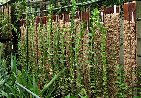 Dendrobium pandaneti :真上に向かって細長く伸長するデンドロビウムの植替え