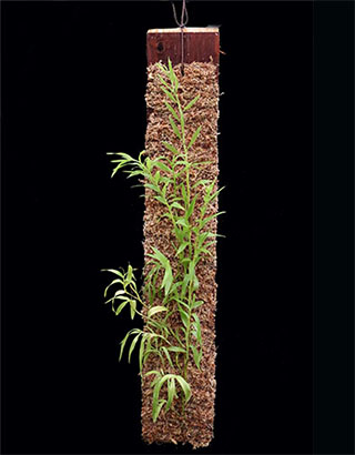 これまでの凡そ1年間のバルボフィラムの植替えは当歳月記に見られるように大型株が中心でしたが、ようやく小型の種(例えば、新種ではirianae, isabellinum, championii, sannio, scaphioglossumなど )の植替えが始まっています。下画像は先週植替えが完了したフィリピン・レイテ島低地生息のBulb. nasseriです。本種は2014年と2016年に合わせて30株程を入手しました。その中で2株に一般サイズ(IOSPEでは縦幅8.5㎝)とは異なる大きな花サイズ(14㎝)の株が見つかりました。入荷当時は杉皮で、その後に炭化コルクとヤシ繊維マットを重ねた支持材としてきましたが、今回はgiantタイプの花株を含め40㎝長の杉板20枚への植付けです。一方、本種は低輝度・中温タイプとされます。しかし当サイトでは高輝度・高温環境で最も良い成長が見られます。