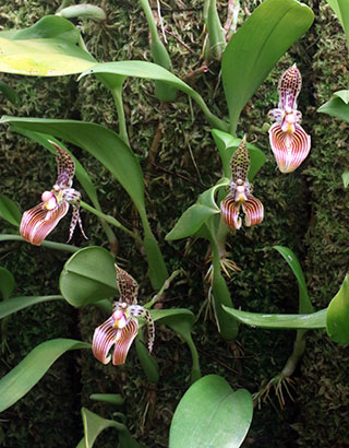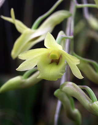 現在(12日)開花中のDendrobium jiewhoei、Dendrobium spectabile及びCoelogyne pandurata