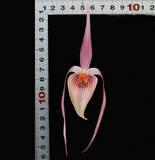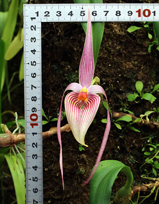 当サイトでは栽培株が開花する度にそのサイズが一般情報と比較してどれほどの相違があるのかを常に調べています。そこに違いがあれば栽培方法あるいはその種の入手先(生息域)に起因するものかどうかを見極める必要があると考えているからです。同一種であっても花サイズがそれぞれ異なるのは、それらが生息する自然環境による摂理であって、サイズだけでなく形状、色合い、模様また香りなどにも様々な相違があり、それらが絡み合って種それぞれはその個性を作り上げている訳で、原種のそうした個性は優劣ではなく、自然の創造物であるが故にその個性を引き出すのが原種栽培の醍醐味と考えています。