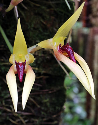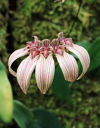 Bulb. trigonosepalum類似種は多様で、当サイトではリップ中央弁形状の類似性からそれらを9タイプに分類し、それぞれを栽培しています。9種の形状差については下画像3段目右の青色の種名をクリックすることで見ることが出来ます。この画像種はそのリンク先の画像の9番目に相当します。
