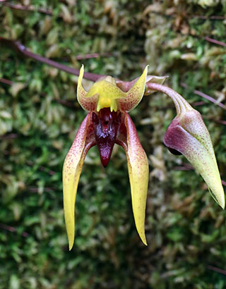 Bulb. costatumは昨年9月に90cm長杉板に植え替えてから初の開花となります。またBulb. inunctumマレーシア・フォームは昨年12月の歳月記に1株10輪の同時開花を掲載しましたが、今回は別株に花サイズの縦幅が16cmとなる大きな花が開花していたため撮影しました。花サイズは栽培環境や成長度に関わる開花力に依存してか、同時開花数が多いとやや小さくなり、少ないと大きくなる性質が見られます。今回の株は1株に一輪のみであったことから、通常サイズ(12cm)と比較してこのような大きさになったのかも知れません。しかし本種に関し自然体で16cmを超えるような花サイズ情報はネットには現在見当たりません。開花中であるものの撮影後に植え替えを行いました。もし多輪花でこのサイズとなれば可なりの迫力となるため今後の開花が楽しみです。