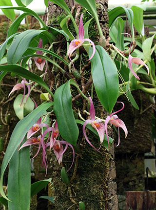 新年を迎え寒さも一段と深まりつつあります。昨年は多くの属種で植替え期が重なり大変でした。そうした中でセロジネの一部やパフィオペデイラムのプラスチックポット植えを除き、デンドロビウムやバルボフィラムの新たな植付けは、それぞれ木製バスケットや杉板に替わりました。現在はバルボフィラムの半数ほどの植替えが残っており、今後さらに3-4ヶ月ほど掛けて大半を終わらせる予定です。これらが終了すれば今年は本格的に新たなカタログを作成し、30cmから90cmサイズの杉材に植付けた小型から特大サイズの株をそれぞれ販売したいと考えています。