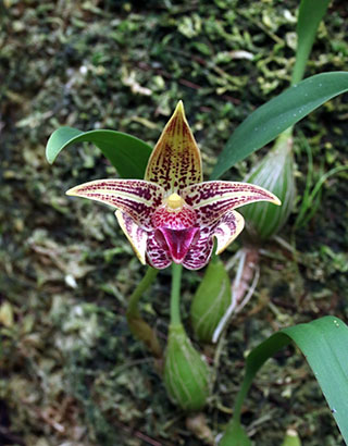 画像中央のBulb. polyflorumは2016年に記録された新種です。バルボフィラムの中で最も入手難な種の一つです。この入手難とは生息数が少ないという意味ではなく、現地から入荷する種の十中八九はミスラベルであったことからです。生息数は不明です。この経緯は 2017年6月の歳月記に報告しています。