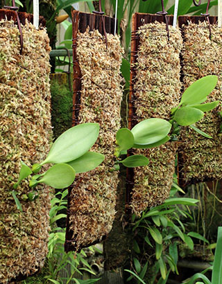 Bulbophyllum sp (種名不詳種sp14)、Bulbophyllum polyflorum,およびDendrobium rhombeumの植え替え