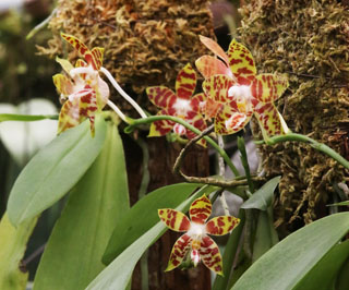 Phalaenopsis bastianiiの個体差 浜松では4月から5月が胡蝶蘭原種の多くが開花する月です。下写真は現在開花中のPhal. bastianii4点を選んだものです。Phal. bastianiiはステンドガラスのような光沢のある色合いを持ち、大株になると20輪程が同時開花します。中でも下段右のソリッドタイプは数千株に1株の割合の出現率と思われます。こうしたフォームは現地ラン園のベンチの上に数百置かれた株から見つけ出す以外なく、過去15年ほどの間で3株しか見ていません。全て入手しましたが、現在は実生化を進めています。しかし、こうした特異なフォームは1株もつことは珍しく良いかも知れませんが、上段右のようなフォームが花の美しさの点では優るように思います。
