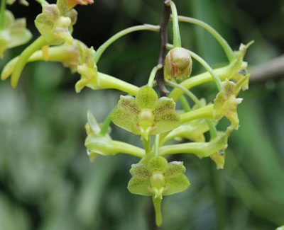 Dendrobium paathiiについて 先月マレーシアからボルネオ島生息種であるDen. paathii名の株を20株程持ち帰り、今月に入り半数の株で開花が始まりました。下写真がその花の一部です。