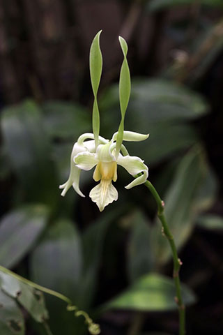 現在Den. schettleriとEpicranthes charishampeliaeが開花しています。前者は2016年、後者は昨年発表の新種です。今週木曜日からのサンシャインラン展には近年のOrchideenJournalに発表されたミンダナオ島生息種Den. deleonii、annemarieaeなどを含め多数の新種を出品します。| Den. schettleri | |