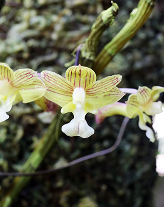| Den. sanguinolentum Borneo | Aerides quinquevulnera Philippines | Bulb. fascinator green |