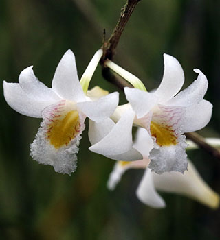 Dendrobium sp (aff. endertii.)のリップ・カラー 昨年10月の歳月記にDen. sp aff. endertiiのリップカラーフォームを取り上げました。今年も同様に多数の株で開花しています。本種は通年で開花し続け、開花休止期間が見られません。さらに高温と中温室に分け、合わせて20株程を栽培していますが、環境温度にも成長変化が見られない至って強靭なデンドロビウムです。今回リップカラーがこれまでの中で最も黒い花(左写真)が開花していたため撮影してみました。