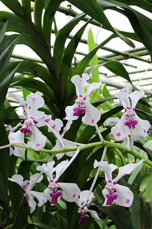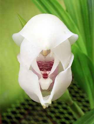 現在(21日)開花中のセロジネと南米種 Coel. palawanensisは今年7月の植え替えから初の開花となります。Coel. exalataは中温タイプで、セパルペタル全てが緑色のフォームが多いのですが、下写真に見られるようなドーサルセパルとペタルがやや茶色を帯びたタイプもあります。また右写真のCoel. dayanaは、1年半前に株分けした新株をBSサイズになるまでと、取り敢えずクリプトモスとミズゴケミックスで植付けたプラスチックポットをベンチの上に置き栽培していたため、20輪程の花がベンチの上でクシャクシャの状態で開花していることが今週分かり、ポットをバスケットに乗せて吊り下げたものです。花軸の中央から先端部が撚れているのはそのせいです。開花後にはバスケットに植替える予定です。下段は全て南米Ecuadorの生息種です。Anguloa eburneaは標高2,000mクラスのクールタイプ種で8㎝を超える大きな白い花と、葉も50㎝程と大きく、高山植物としてはかなり見応えがあります。匂いは強く、orchidspecies.comではバニラの香りとのことですが、良い香りではあるものの甘さは感じません。Stanhopea annulataは2輪咲きの中 - 高温タイプ種です。当サイトでは花は倒立して咲いています。