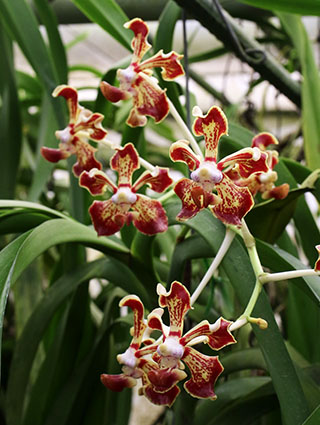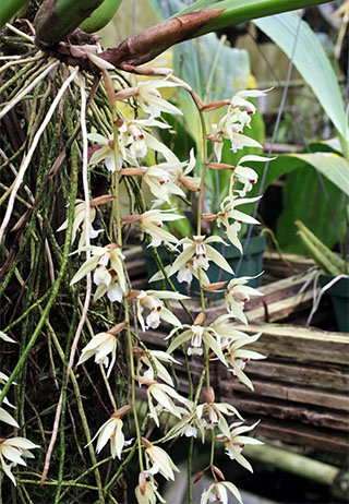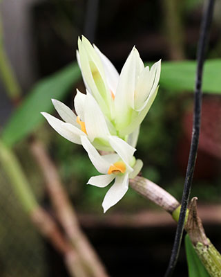 新年を迎え浜松では連日晴天日が続き、温室内では寒冷紗を外し昼間25℃、夜間は暖房により15-18℃の気温が維持され、冬期とは云え温室内では高温タイプの属種にとり最適な環境となっており、7割以上の株に新芽や新根が見られます。下写真は現在開花中(撮影は29日から6日)の種です。1月は大型の花株は少ないものの、現在Phal. schillerianaなど胡蝶蘭属やAerides属など大輪花や多花性の種に多数の花茎の発生と伸長が見られ、2-3ヶ月後にはかなり華やかになると思います。写真下の青色種名のクリックでそれぞれの詳細画像が見られます。