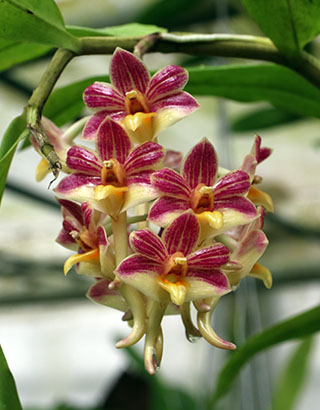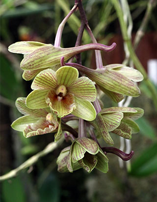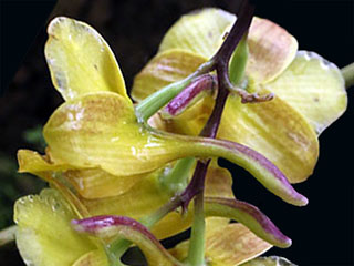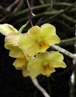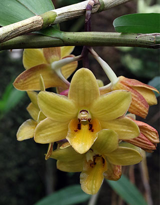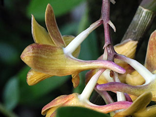 現在(8日)開花中のデンドロビウム3種:Dendrobium crabro, calicopis及びdianae bicolorを撮影しました。