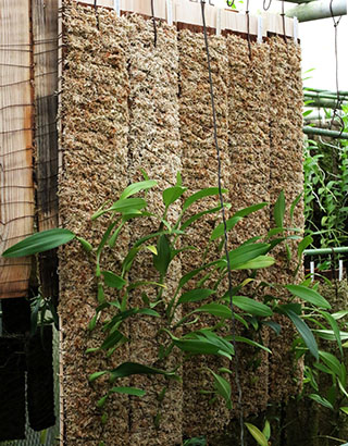 連日の植替え作業が続いています。バルボフィラムの植付けは昨年8月頃までは炭化コルクにヤシ繊維マットを重ねミズゴケで根を覆う方法でしたが、その後は株サイズにかかわらず、10種程を除き全て杉板への植付けに替わっています。一方、茎が下垂あるいは半下垂性のデンドロビウムも一部は杉板へ植付けを行っているものの、現在は殆どが木製(チーク)バスケットとなっています。そのため、これまでの1年間は炭化コルクへの植付けは1株もありません。下画像は最近植替えのバルボフィラム16種です。それぞれの株画像右下のcm表示は取付材の長さです。幅は全て15㎝に統一しています。この中で70㎝長の取付材はヘゴ板で他はすべて杉板です。花画像の詳細はそれぞれの花画像上の青色種目のクリックで見られます。