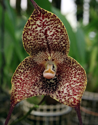 | Den. cinnabarinum v. angustitepalum Borneo | Dracula platycrater Colombia | Dracula cordobae Ecuador |