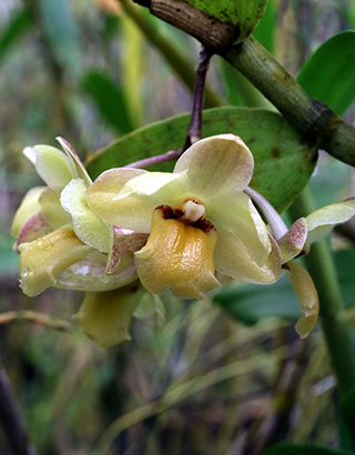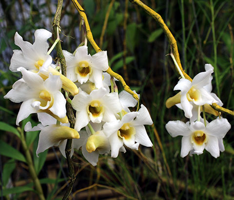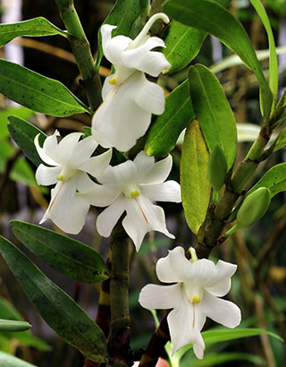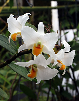 現在開花中のDendrobium busuangenseとCoelogyne rhabdobulbon