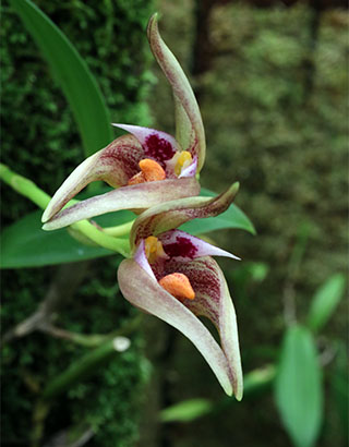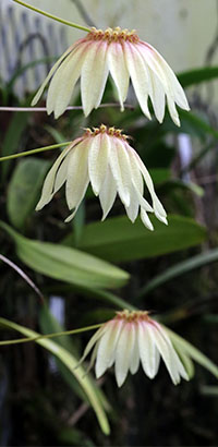 いずれにしてもフィリピンBulb. dolichoblepharonの花株は写真が示すように他種とは明らかな違いがあるものの、その真偽は別として、両種が同種と見做されたことでBulb. dolichoblepharon固有の特性や差別化への探求が失われているとも考えます。現在国内外共にネット上には上写真の花形状に類似するBulb. dolichoblepharon名の画像は当サイト(Cyber Wild Orchid)以外見られません。もしこれがBulb. dolichoblepharonではないとすれば、画像が示すようにその花姿はCirrhopetalum節の中では最も華麗な種の一つでもあることから既に知られた種名があるはずで、別名も無いとすれば未登録の新種の可能性も考えられます。本種の種名問題は今後の課題(DNA解析等)となります。