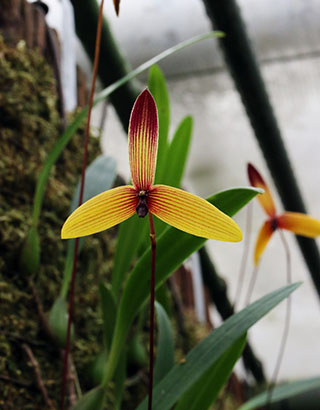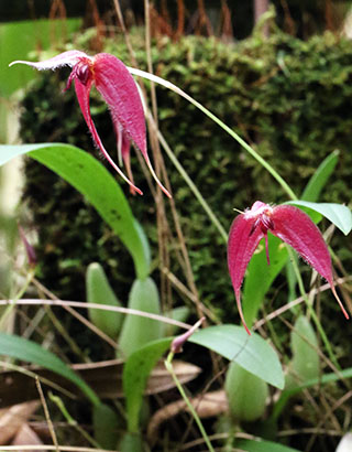 下画像のBulb. irianaeは2016年10月に入荷、当時の種名をBulb. obovatifolium redとして初花を2017年7月の歳月記に掲載しましたが、その後本種がOrchideen Journal Vol.6-5, 2018にて新種Bulb. irianaeとして発表されたことで、当サイトでは2018年10月以降現在の名に改名しました。