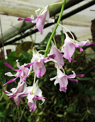 Dendrobium pandaneti :真上に向かって細長く伸長するデンドロビウムの植替え