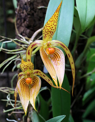 ところでマーケットにおいて、上画像に見られる花株を期待してBulb. dolichoblepharon名で発注する場合、販売業者や趣味家を含めて花を確認した株を入手することが必須です。上記のような現状を考えると花の確認(花写真を含め)のない株の殆どはシノニムとされるBulb. brevibrachiatumとなる可能性が高く、そうであってもシノニムとされる以上、発注名の種に間違いは無いとされサプライヤーにクレームは出せませんので注意が必要です。これはBulb. brevibrachiatumの入手も同様で、この名前で上画像中央の花株を期待しても、OrchidRootsサイトが示すように、多様な花形状がBulb. brevibrachiatumとして公表されている限り、そうした中のどの花株が入荷するかは分かりません。