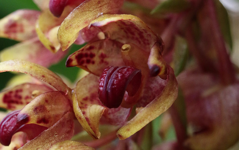 夕刻から夜間は花がやや閉じる特性が見られる。 Click following for More info.; Bulbophyllum singaporeanum