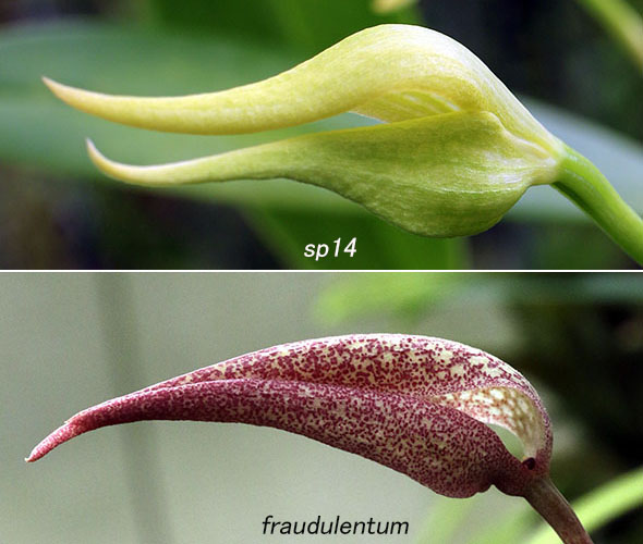 ドーサルセパルは開花から落花まで僅かに開く程度である。