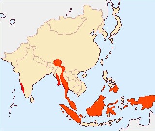 タイ、ミャンマー、インドネシア(ジャワ、スワウェシ島の一部)などの熱帯季節林では常緑樹と落葉樹が混在し、立ち木密度は熱帯雨林に比べ低く、また木の高さも比較的低くなっています。乾季が強い地域では樹冠の一部が落葉するため、熱帯降雨林と異なり太陽光は林床まで到達します。この結果、林床には潅木や草が密生します。polychilos亜属の多くが生息します。 | |||||||||