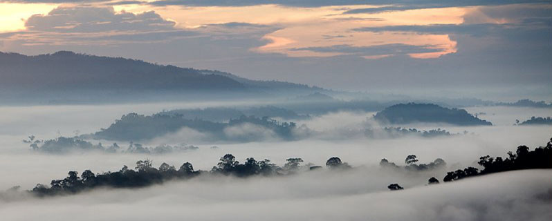 着生とCAM植物 胡蝶蘭は着生植物であり樹幹の表皮に根を張って成長します。着生植物は他の植物を支持木にするものの寄生植物とは異なり、支持木から養分を奪うことはしません。着生蘭はラン菌(カビの一種)と共生し、ラン菌は蘭の根の細胞にラン菌根を形成します。蘭は光合成により生成した炭水化物(糖分)を菌に与え、菌は酵素によってその糖を分解し窒素化合物(窒素、リンが主体)を生成し、その無機栄養分を蘭がもらうといった共生が考えられています。胡蝶蘭は光合成による有機物(炭水化物、ビタミンなど)を自分で生成する点において寄生植物とは異なります。胡蝶蘭はそのほとんどが樹枝に着生しますが、一部の胡蝶蘭(P.sumatrana, P.lowii, P.cornu-cerivi, P.cochlearis Aphyllae亜属など)は岩(石灰岩)の上に、またオーストラリアの一部のP.amabilisは地上にも見られるそうです。熱帯雨林の中にあって、つる性植物が絡んだ苔むした岩や、石灰岩の崖なども多く見られ、これらに着生しているものと思われます。しかし岩の隙間や、地中に根を下ろした生態は僅かです。また根は気根として常に空気に触れていることが必要で、根が長期間浸水状態にあったり、空気の流れがなければ腐敗し生存ができません。 樹幹に着生する植物は特に乾季にあっては、長期間の水分ストレス(不足)にさらされることになります。このような生息状況の中で温度が高く、湿度が低下する昼間に気孔を開いて炭酸同化作用を行えば、多量の水分を葉から蒸散させることになり一層水分が不足しダメージを受けます。これを避けるため夜間の低温多湿時に気孔を開いてCO2を取り込み、CO2を一旦リンゴ酸として葉肉細胞内の液胞に貯蔵し、昼間にこのリンゴ酸を再びCO2に還元するとともに、太陽光を利用して光合成を行い、炭水化物を作り出し酸素を放出します。この光合成プロセスをもつ植物をCAM(Crassulacean Acid Metabolism)植物と呼び、カトレア、レリア、バンダもこのグループの1属です。これに対して地生蘭であるPaphiopedilum、リカステ、シンビジウム属はC3型とされ、昼間にCO2を取り込み直ちに光合成を行う点でCAM植物とは異なります。すなわち胡蝶蘭は、主として地中から水分を補給できるC3植物とは異なり、水分不足から身を守るため、葉からの水分蒸発を押さえる特性を身につけるに至った相当進化した植物と考えられます。 ![]() ボルネオ島朝霧遠景 © Bent Christensen しかし、沼や川を囲む低地熱帯雨林地帯に薄葉から中厚の葉をもつ多くの胡蝶蘭が生息し、この環境では昼夜を問わず常時高温多湿であり、たとえ水分供給量では地生植物とは比較にならないとしても、必ずしも夜に呼吸をしなければならない必然性がないように思えます。その視点に立つと、胡蝶蘭がCAM植物に進化した背景には、着生であるが故の耐乾燥性という理由だけではなさそうです。 この疑問に対しては、植物が密生する樹林内で、すべての植物が同時に光合成を行えばCO2不足となり、これを避けるため一部の植物が競合の少ない夜間にCO2を取り込む機構に進化したのだと言う説があります。 地上での生存競争を避けて樹幹に生息の場を見出し、その結果として乾燥に耐えるCAM植物に進化すると共に、湿気のある地帯に広がった一部は薄葉となり、またより環境の厳しい地域の一部が厚葉に変化していったのではないかと推測されます。葉の形態だけからもいろいろと想像することができ興味のあるところです。 以上のように胡蝶蘭野生種は多様な環境に生息し、その地域気候から生育特性は下記の3つのグループに分けられます。