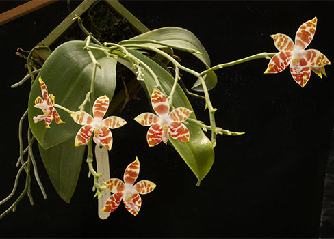 5.特記事項 Phal. amboinensisは交配や選別改良がPhal. violaceaに次いで多く、実生が親の色やパターンを継承する保証はまずない。奇抜な花柄をもつ交雑種を希少種として販売される可能性がある。その色合いや形状を継承するためにSeedlingを目論むのであれば原種専門業者以外からの入手は避けた方が良い。 | ||